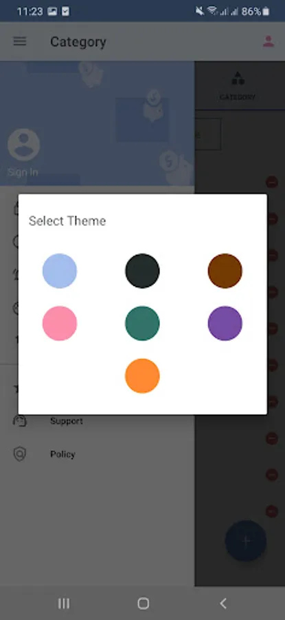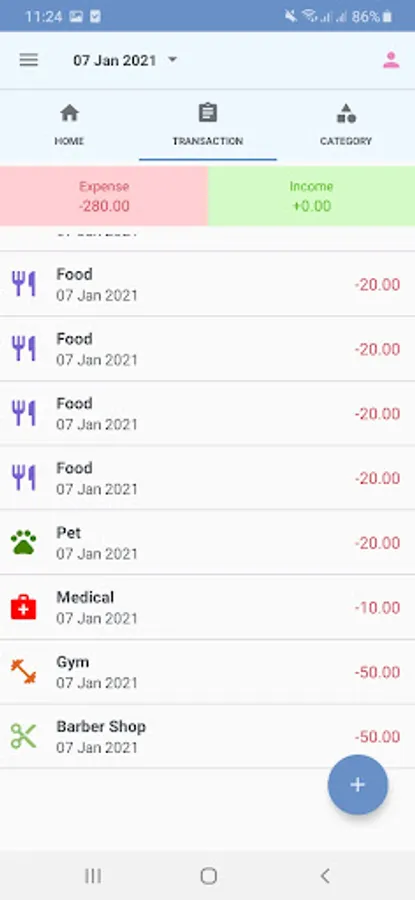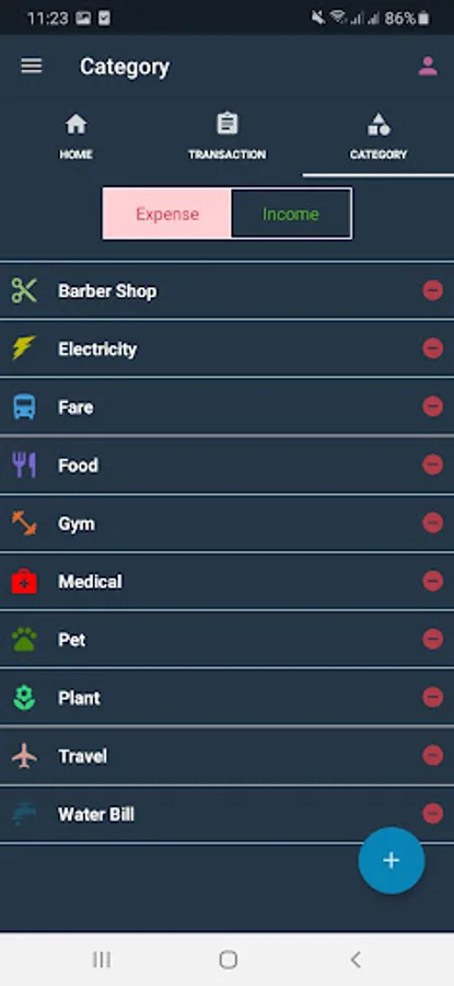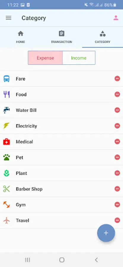 * Set the color for each category which will be reflected in the chart and icon color. This will also helps you recognize the transaction easily.