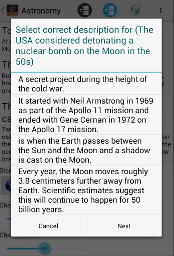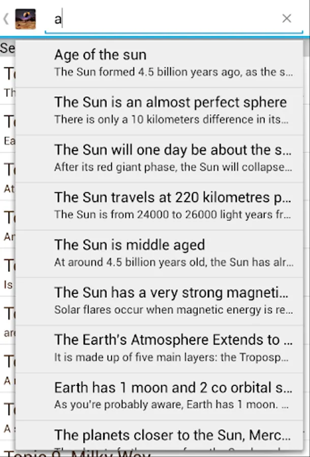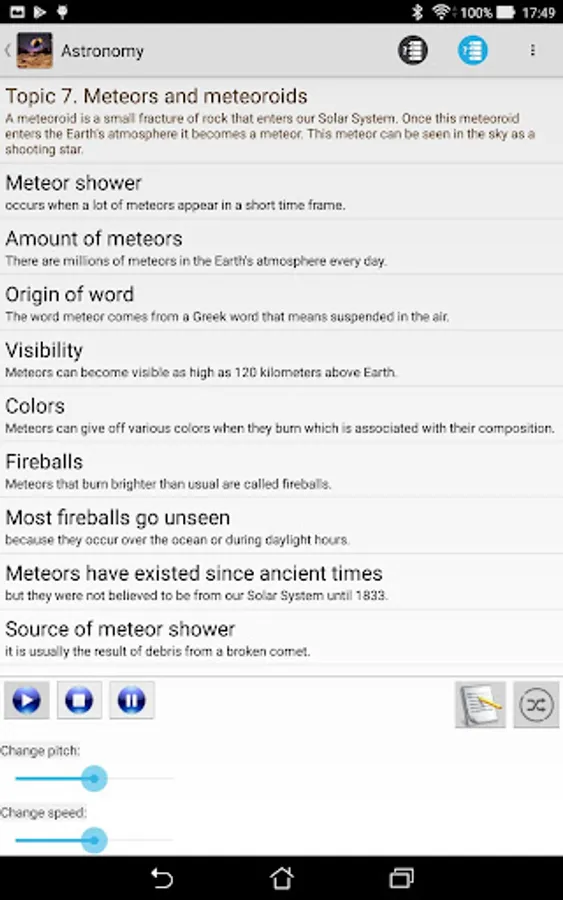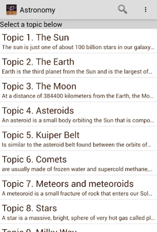 Application "Astronomy, Amazing Space Facts" include next themes: