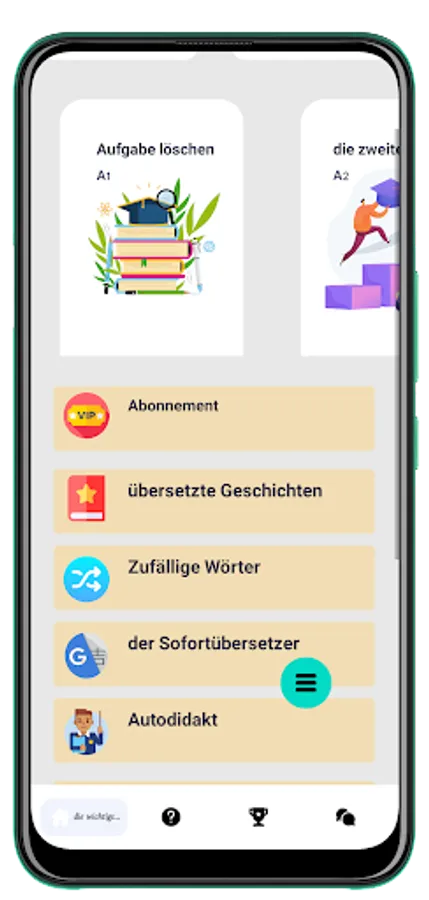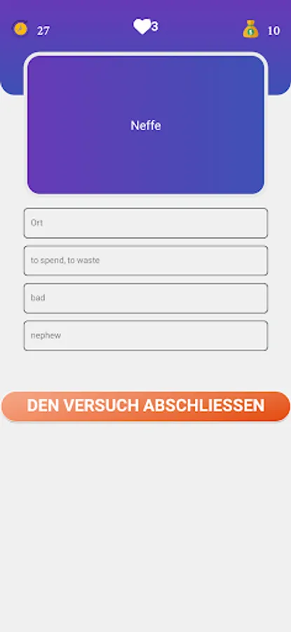 Test your knowledge with the different types of tests offered by the app, for example b: