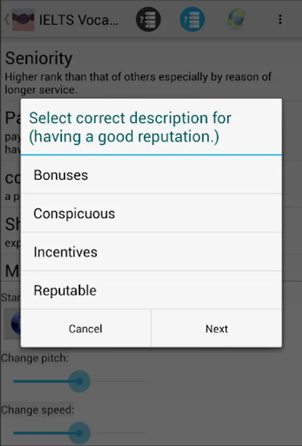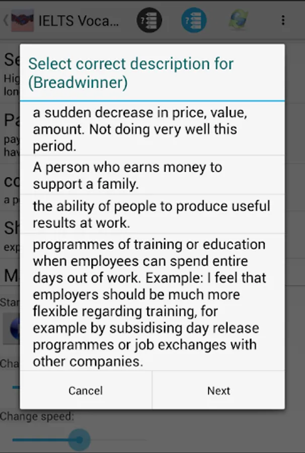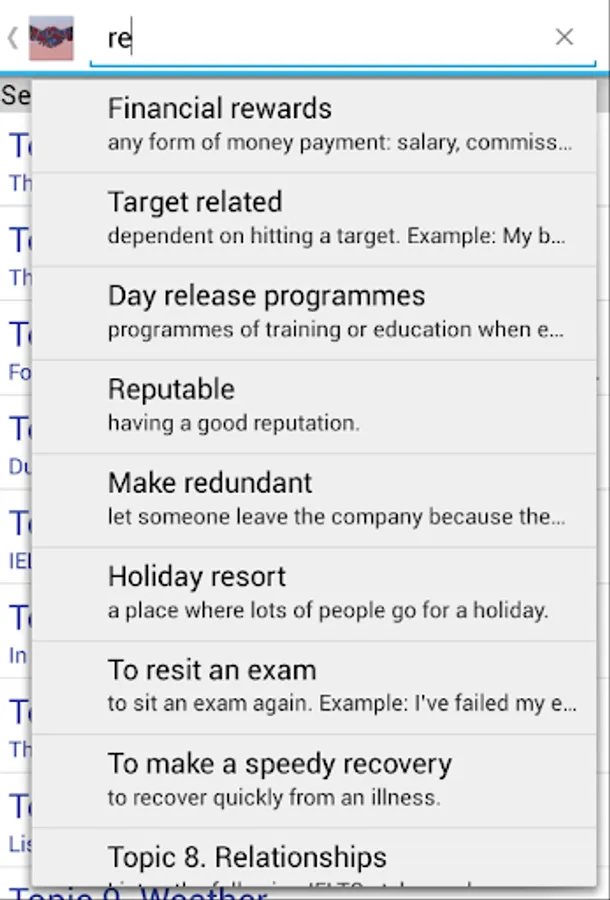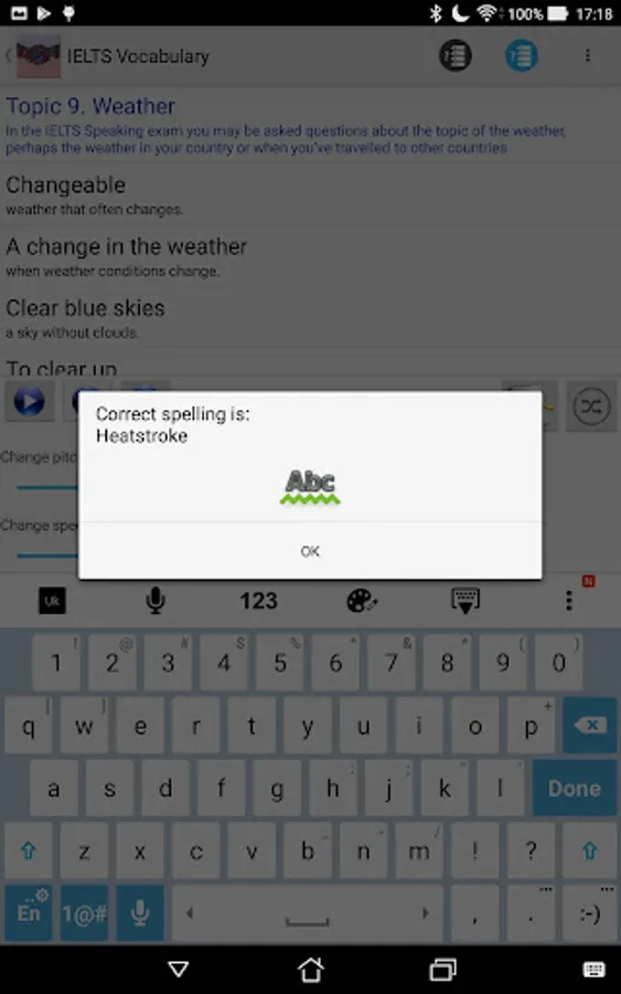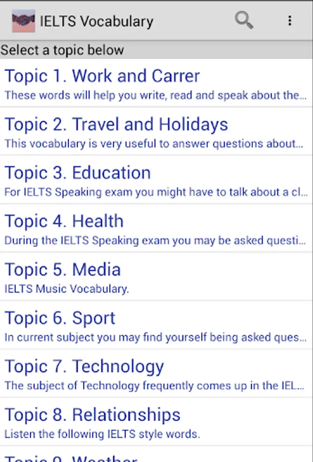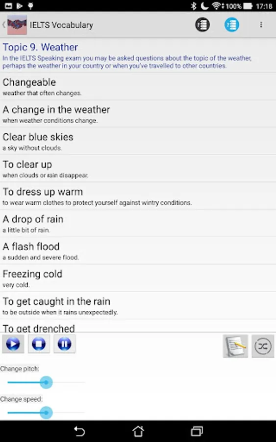 Offline, useful list of IELTS words sorted by topics with description and examples for listening.