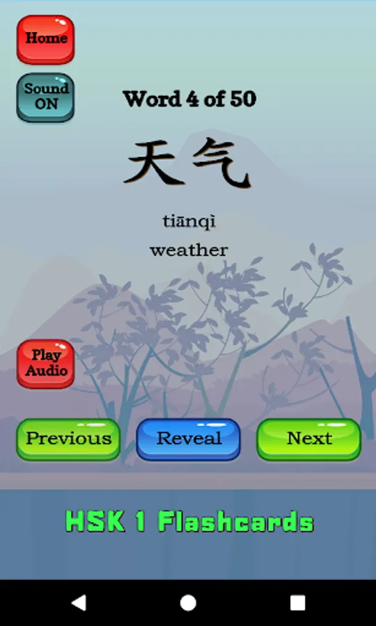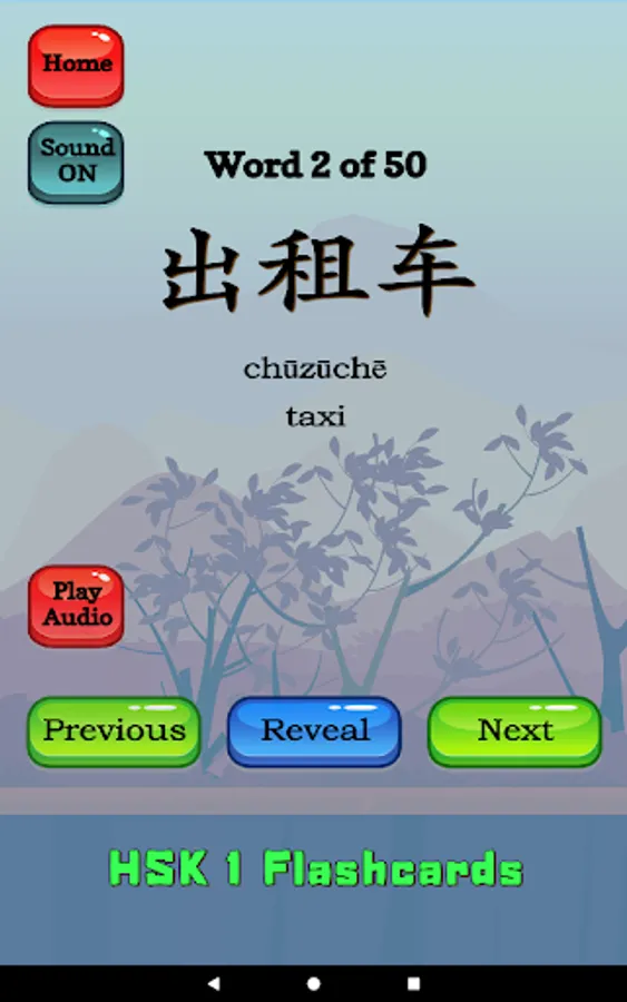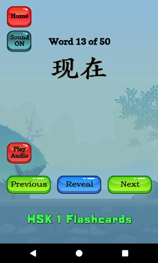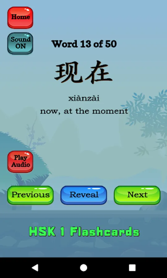 Think you know all 150 words? Time to try the full deck Mandarin Chinese flashcards pack. Studying Chinese has never been this simple. Pronunciation of each word is also available at the top of a button. Want to take another look at the Chinese characters on the previous card containing the Chinese word? Simply tap the previous button, or tap the previous button multiple times to go back to the beginning.