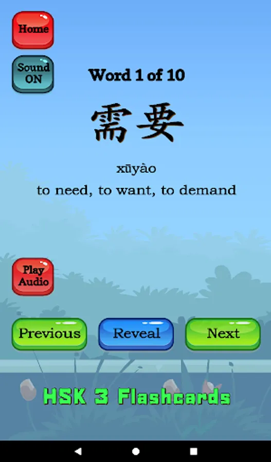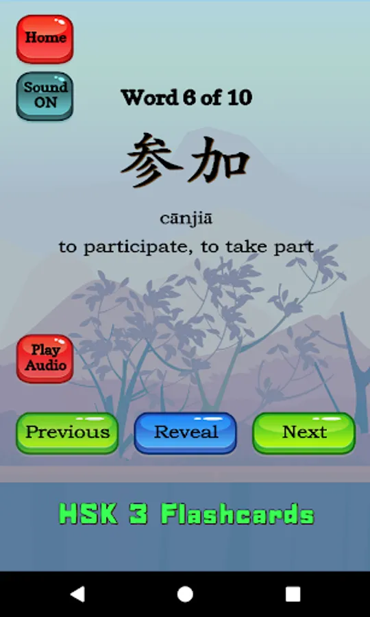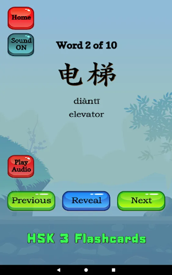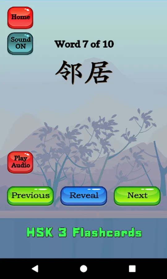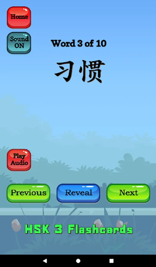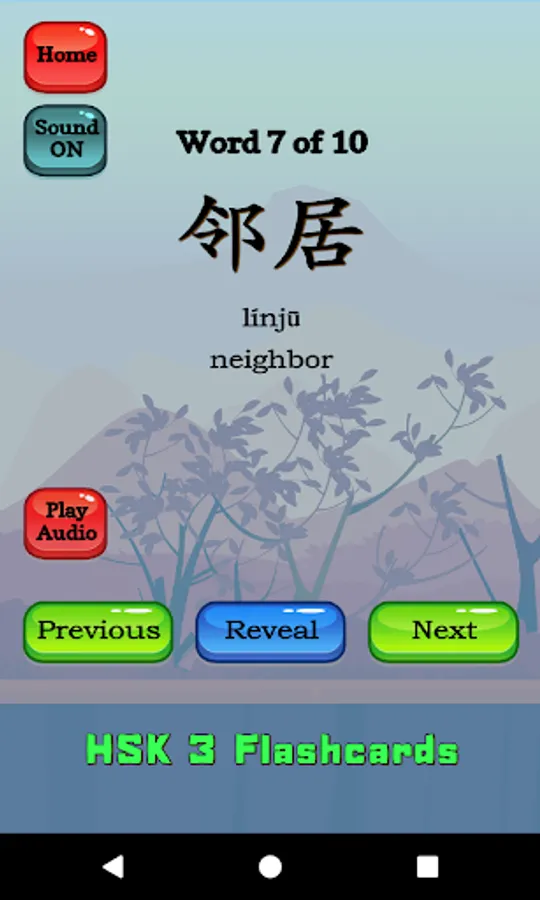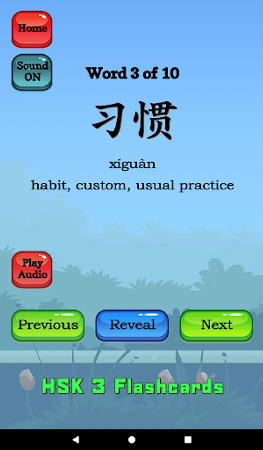 This learning Chinese app can be used in a couple of ways. Prior to flipping the card, try to really recall what the English and Pinyin are. If the answer is obvious, no need to waste time flipping the card. Simply tap next and proceed. In this way, you will develop the ability to blaze through all 300 words in under two minutes, which means you are now an HSK 3 master.