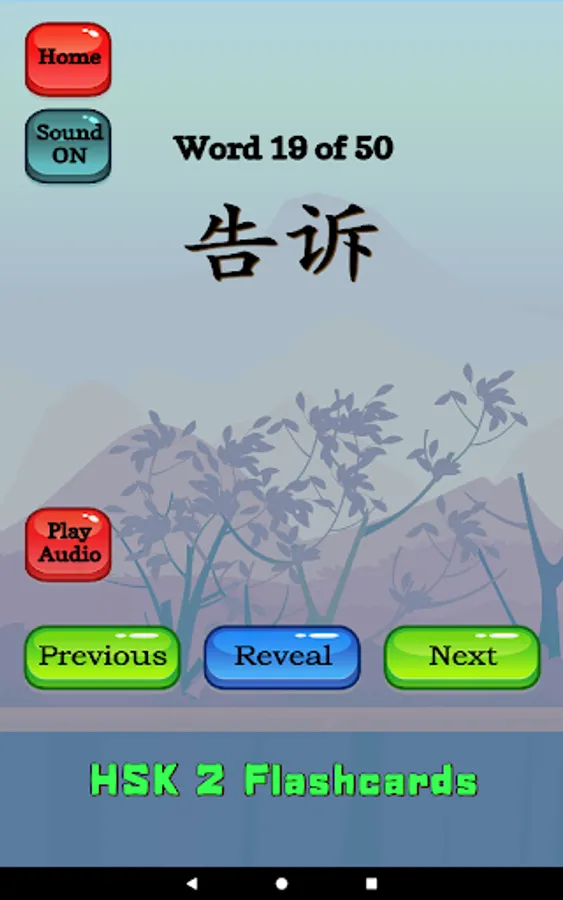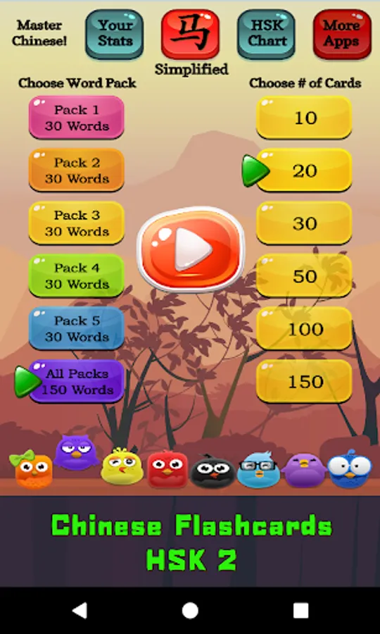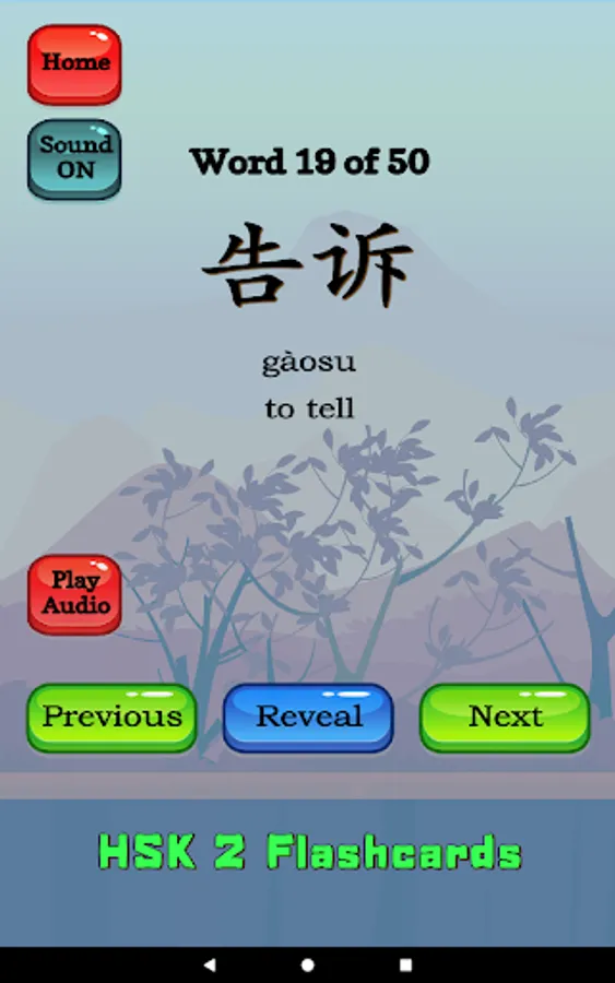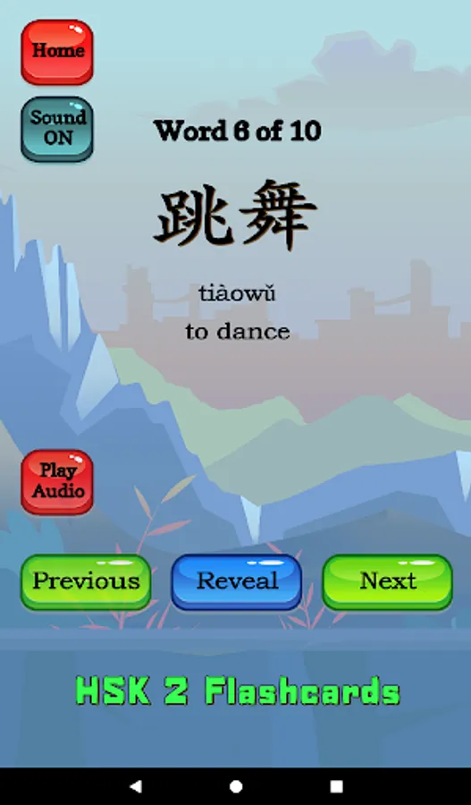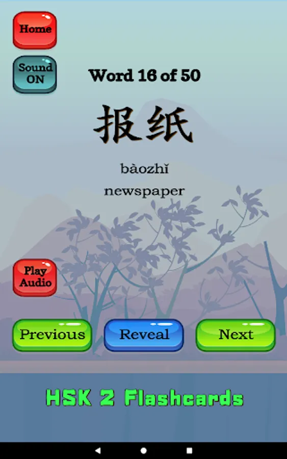 This learning Chinese app can be used in a couple of ways. Prior to flipping the card, try to really recall what the English and Pinyin are. If the answer is obvious, no need to waste time flipping the card. Simply tap next and proceed. In this way, you will develop the ability to blaze through all 150 words in under a minute, which means you are now an HSK 2 master.