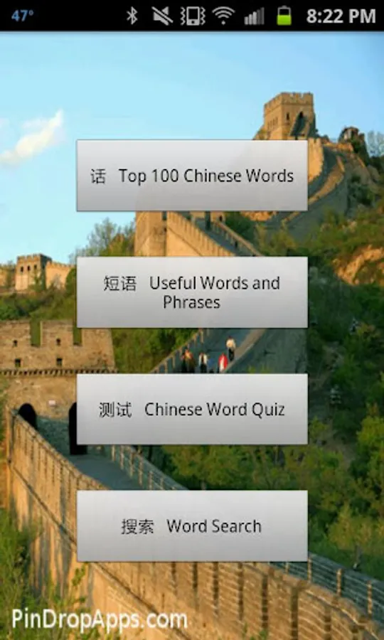 Easy Chinese is designed for fast vocabulary learning through a flashcard type interface reinforced by a word quiz feature to make language learning more enjoyable.