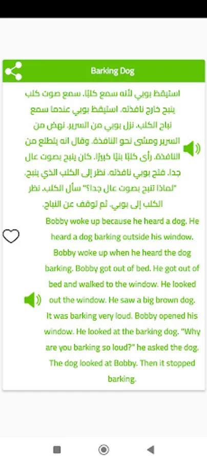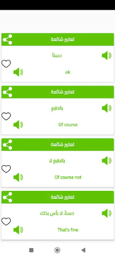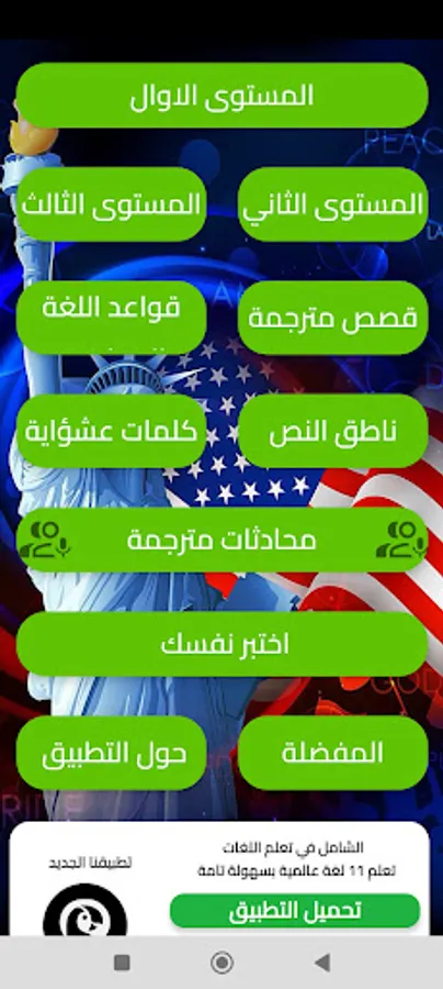 The application is divided into a group of levels that start with you from basic to mastery Application stages 1- The Basics: It contains a large group of introductory lessons and a wide range of terms and meanings with a way to pronounce each word in an easy and fun way. 2- The second level: It contains many words and sentences that help you learn in an enjoyable way. 3- The third level: there are more than 4000 English words and many sentences and it takes you from the intermediate level to the professional or advanced 4- Stories: It includes a group of interesting English stories, so that you can get used to reading English pieces as an application of the previous stages 5- Tests: There are many questions that you must solve in order to learn the language and words 6- Notifications and alerts: It is considered one of the best and most beautiful features in the application so that you are reminded every hour with an English word with translation and correct pronunciation 7- The self-teacher feature, where you can add your own word, add it to the application, and the word will be pronounced correctly 8- Text-to-speech feature. Sentences and words will be pronounced in the English language Also, you will discover many features when you download the application