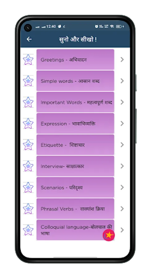 This app helps you in learning spoken and written English from Hindi. It is best app to learn English grammar, daily English conversations. It is a free English learning course used by millions of learners for spoken and written English, grammar, and vocabulary building.