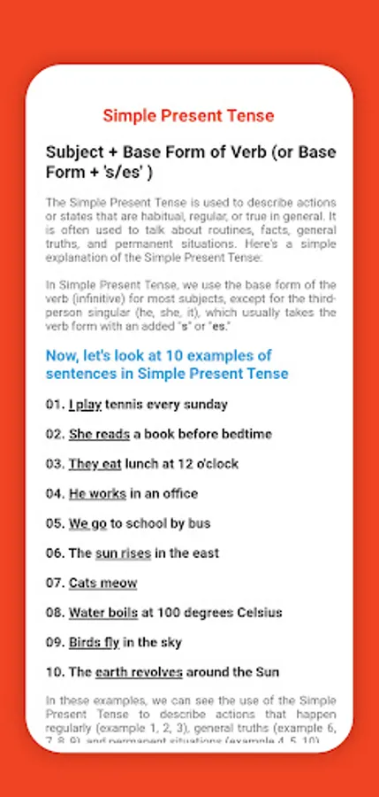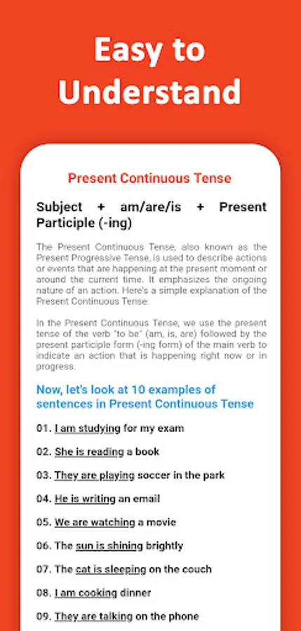 Immerse yourself in a user-friendly interface that offers clear explanations, engaging examples, and interactive exercises. From the fundamental Simple Present Tense to the complex nuances of the Future Perfect Continuous Tense, each tense is demystified and presented in a digestible format.