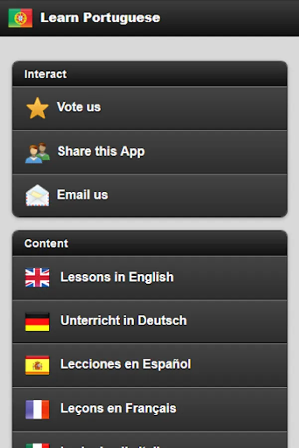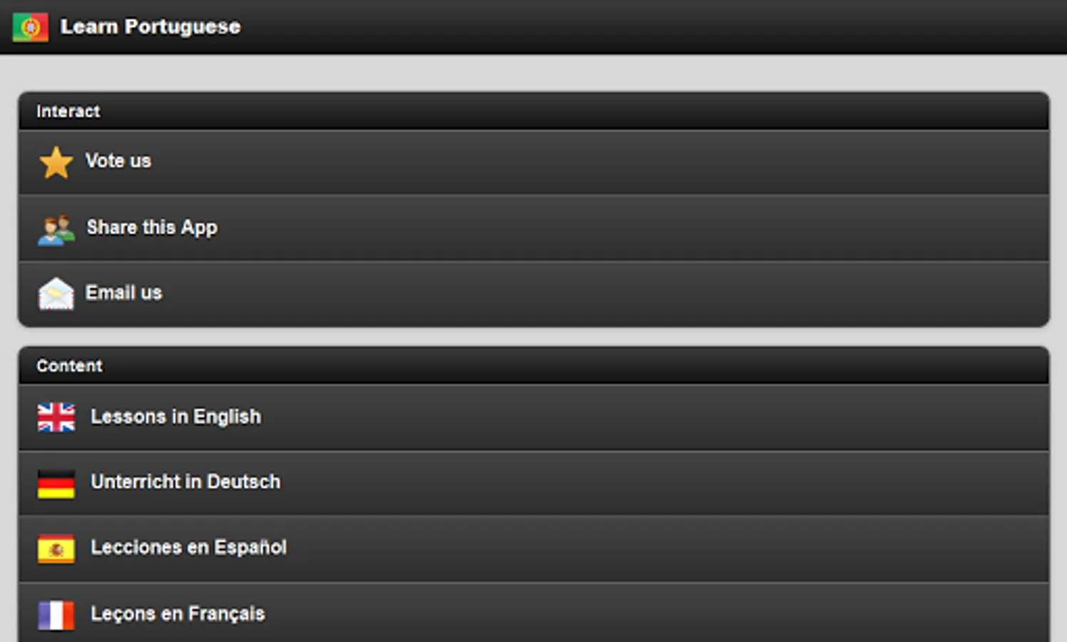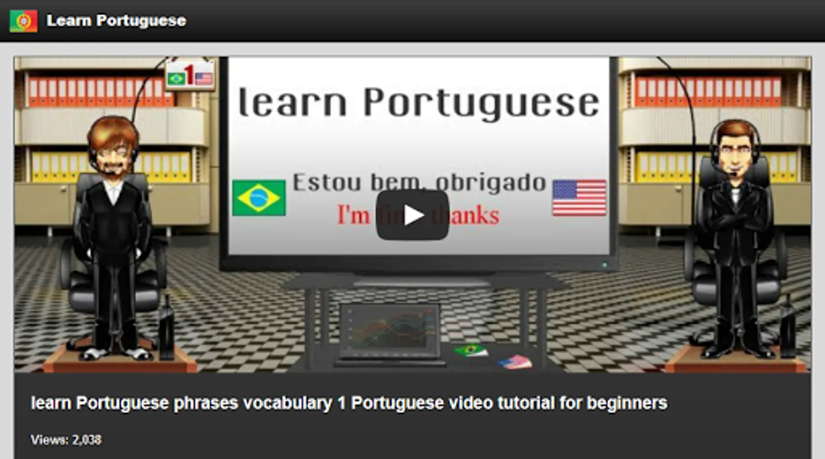Learn Portuguese for Free is possible with this app. Learn more than 100 Portuguese basic words and expressions with our selected Portuguese lessons. It's super easy and intuitive. Before going to real classes you can learn a bit of Portuguese with your mobile phone or tablet. Just follow our selected tutorials and learn how to speak Portuguese in a few days. We have lessons in English, Spanish, Italian, French, German, Arabic, Russian and more.