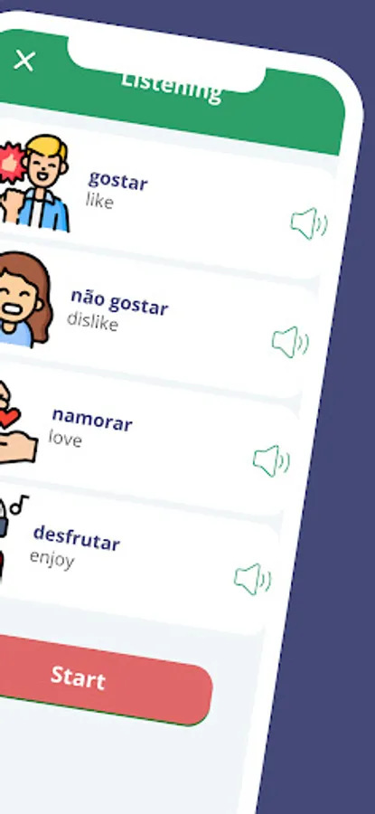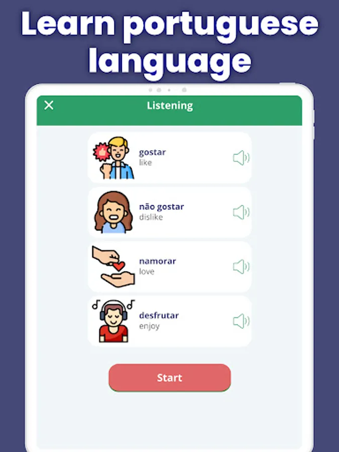 Study Portuguese words in the app Portuguese for Beginners A1 Level. Studying Portuguese has never been so easy and simple!