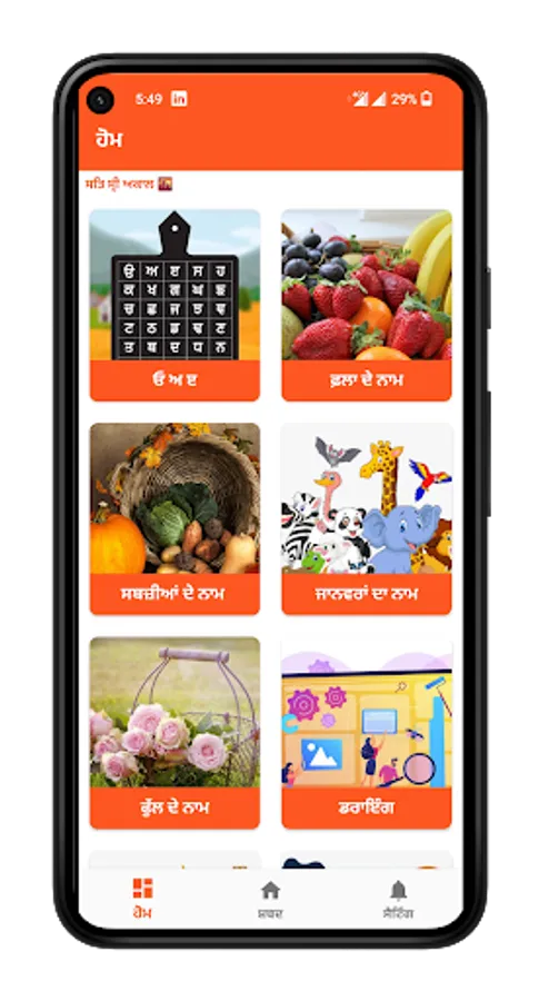 No signup , no login. Just direct get inside the app and learn Gurmukhi language.