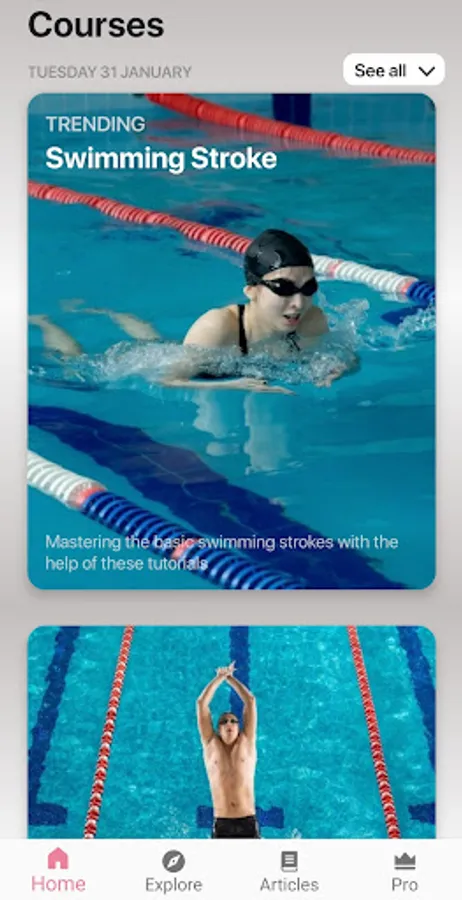 Do you want to learn to swim? Are you looking for a swimming training program to improve your swimming skills? The swimming lessons app will help you take your swimming to the next level with a personalized swimming workout. It has swimming lessons for beginners that will help beginners learn how to swim step by step.