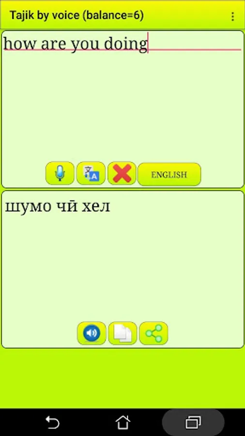 You will not need to type the words by hand, you can only dictate with the microphone and the phone will convert your voice into sentences and words, if your mobile phone supports the feature of converting voice to texts, after you finish dictation successfully the application will translate the words into the Tajik language, then pronounce the words Translated