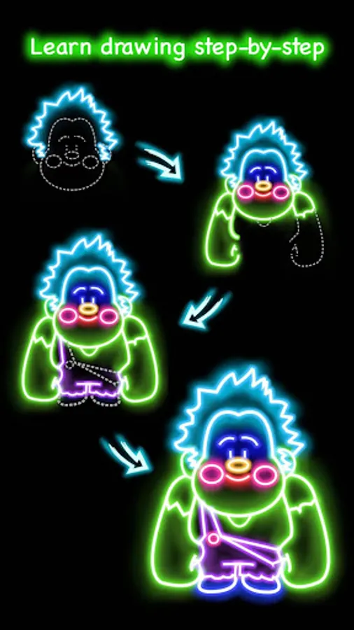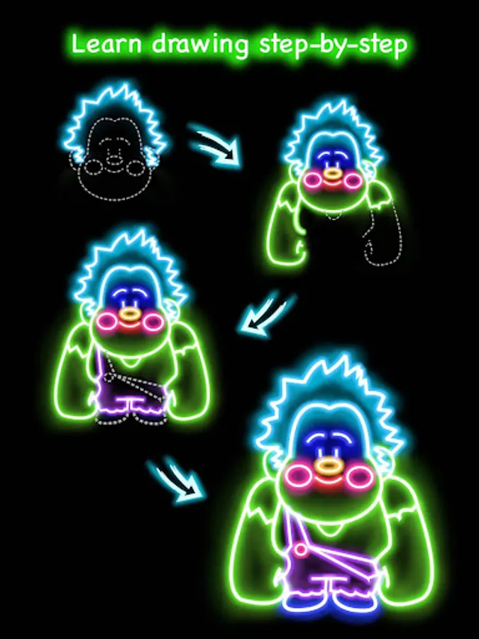 With glow brushes, drawing the interesting cartoon and comic pictures!