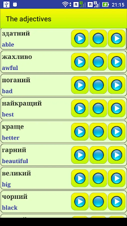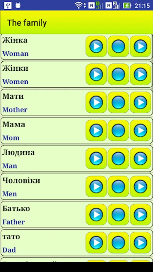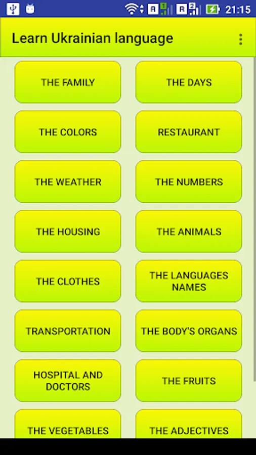 Learn most used words in Ukrainian language , You can find more topics like : The family , The days , The colors , Restaurant and Eating , The weather , The numbers , The housing , The animals , The clothes , The languages names ,Transportation , The body's organs , Hospital and doctors , The fruits , The vegetables , The adjectives and The verbs.