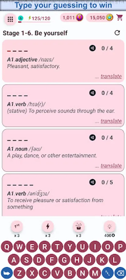 * Completing English vocabulary quest is an easy way to collect a lot of "stars" what used in Vocabulary Guessing hints