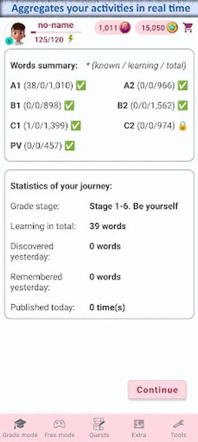 * Aggregates your activities in real time, helping you know your vocab words status day by day