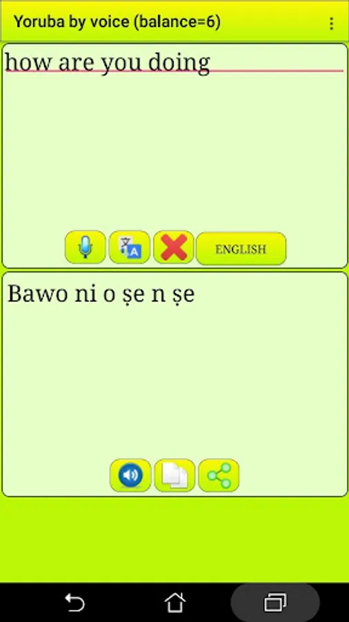 You will not need to type the words by hand, you can only dictate with the microphone and the phone will convert your voice into sentences and words, if your mobile phone supports the feature of converting voice to texts, after you finish dictation successfully the application will translate the words into the Yoruba language, then pronounce the words Translated