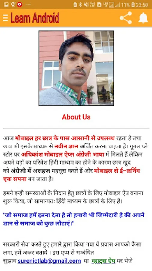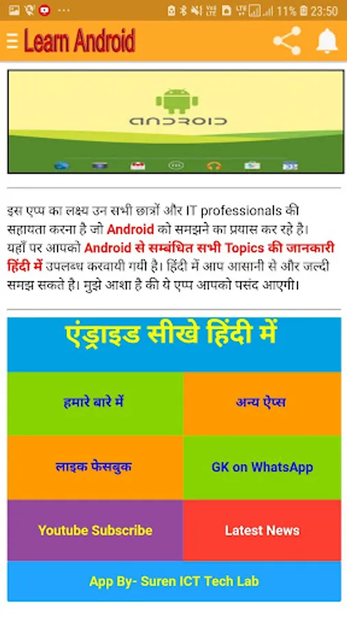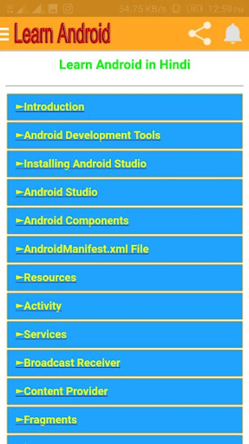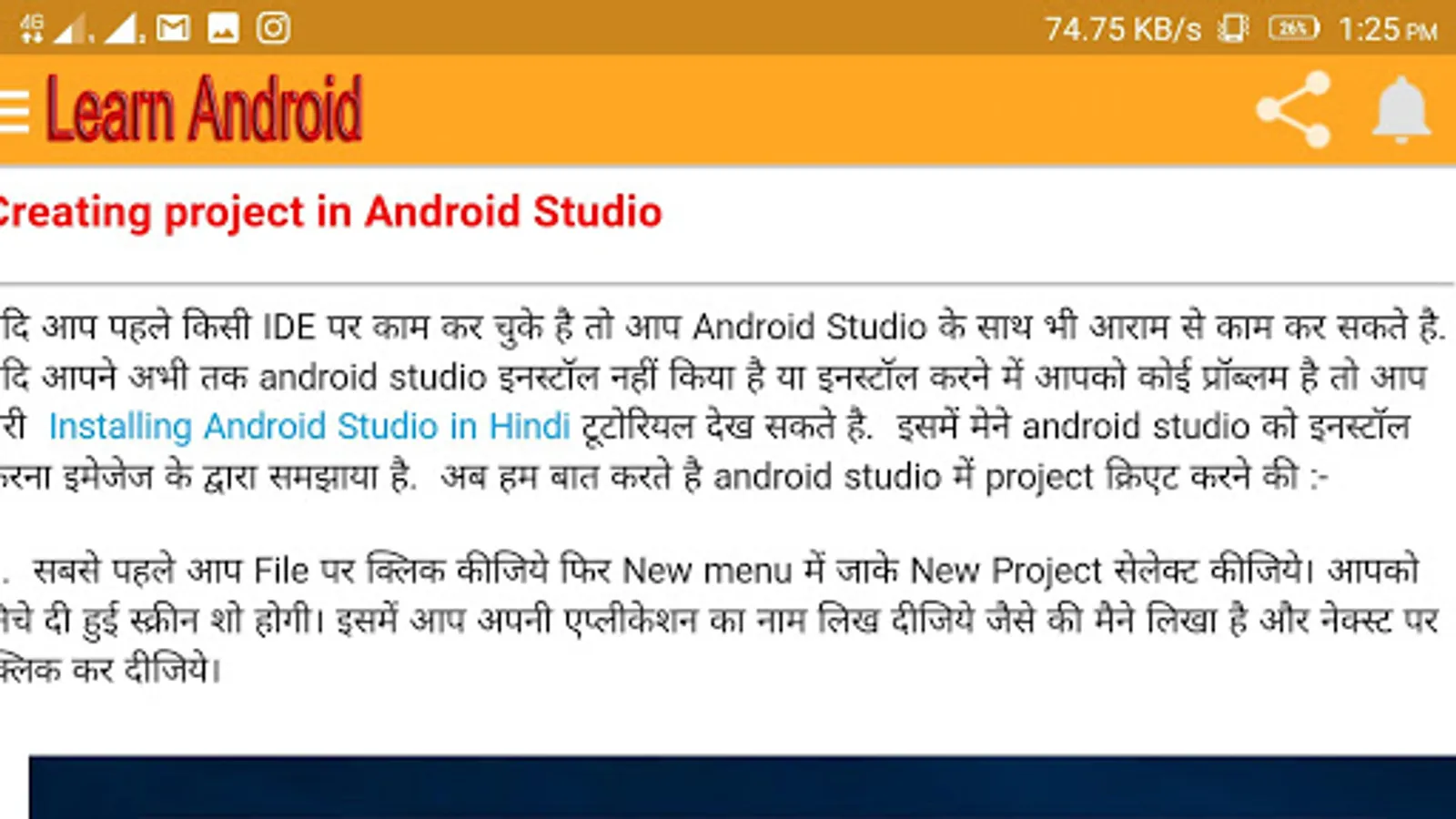 The goal of this app is to help all the students and IT professionals who want to make Android mobile app and want to learn Android Studio, here all your information of Android has been provided in Hindi. You can understand Hindi easily and quickly.