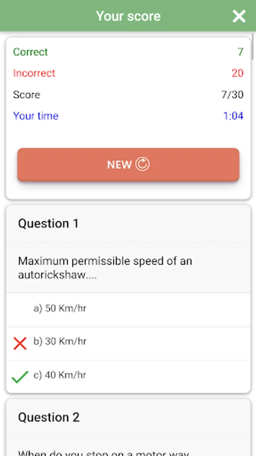 The app is a simulator of the theoretical exam done in Road transport office (RTO) to obtain the driver's license. Your written exam will consist of random questions and at the end of each test you will observe your score and errors.