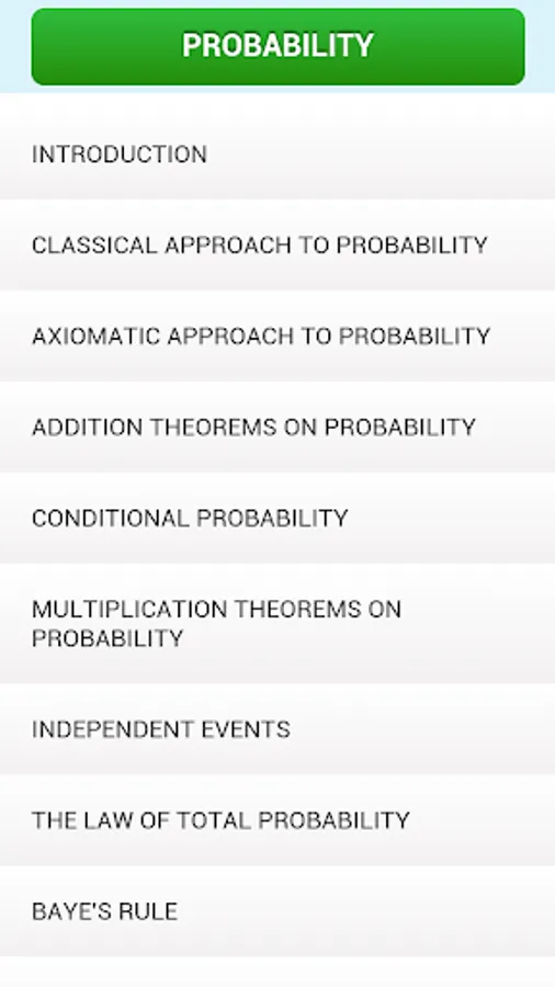 This application for probability is a great work from a team of teachers and educators.here we tried our best efforts to includes almost all topics of probability and basics of random process. This time probability tutorials also added with this application. Best to learn the topics of probabilities such as
