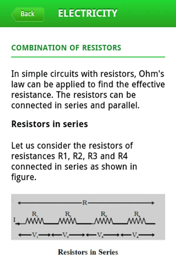 This title here in learner’s series application covers generally two important modules of college physics and those are Electrostatics and Current Electricity. Under Electrostatics module we tried to add almost all topics of static electricity, such as electric charges, properties of electric charges, coulomb’s law, electric field, electric field strength, electric field at various point charges, principle of superposition, electric lines of forces, electric dipole, electric field due to electric dipole, torque on dipole, electrostatic potential, gauss’s law and its applications, conductors and insulators, capacitance, capacitors and combination of capacitors and energy stored in the capacitors. Second module Current Electricity covers topics like electric current, current density, drift velocity and its calculations, Ohm’s law, electrical resistivity and conductivity, carbon resistors and color coding, combination of resistors , temperature dependence of resistance, kirchhoff’s laws, wheatstone’s bridge and determination of specific resistance and temperature coefficient of resistance. Both modules in this application almost covers all about electrostatics and current electricity. Students can easily learn each every topic with the help of pictures and simple mathematical expressions….Very helpful tutorials for students..