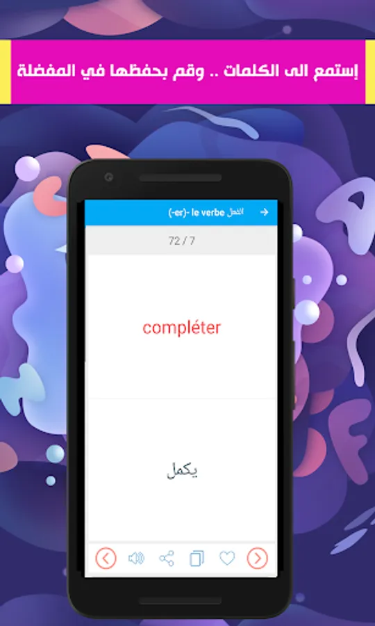 The application contains a special section for words in order to increase your vocabulary and your French vocabulary, so that this section consists of multiple classifications of French words, and you can also press the Speak the word button to hear the word