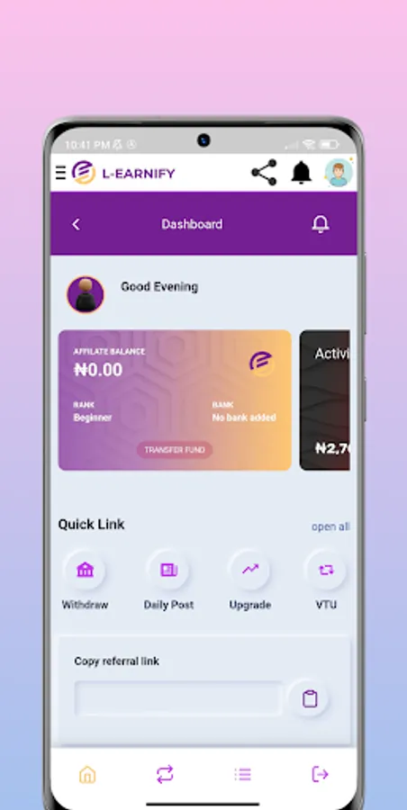 Immediately after registration, each user receives a N2500 welcome bonus cashback on their dashboard instantly.
