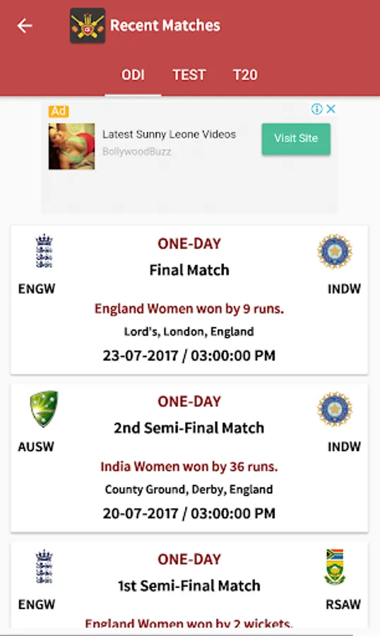 • Match reviews and previews for all ongoing, past and upcoming matches