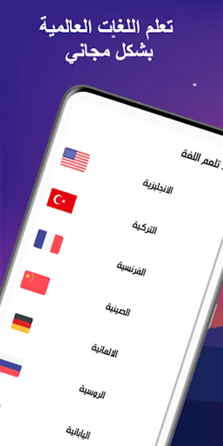 Learn English, Turkish, German, French, Chinese, Russian, Japanese, Spanish, Italian, Hindi and Korean.