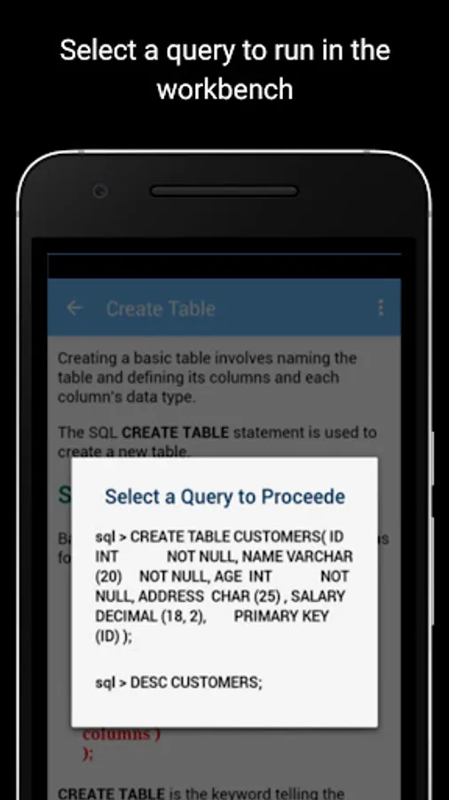 SQL Tutorial With Query Browser is an app that gives you all SQL topics such as: