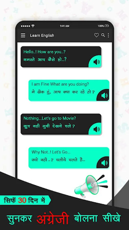 Spoken English in Hindi app is best way of sunkar english bolna sikhe (सुनकर अँग्रेज़ी बोलना सीखे). This is an English speaking(learning) course for learning English easily in HINDI language.