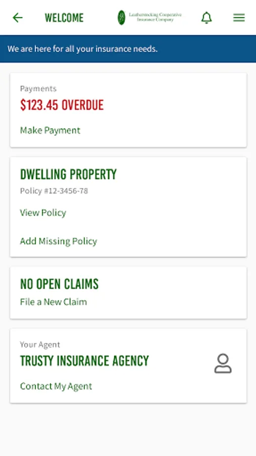 * Have a security code which can be found on your invoice or by contacting Leatherstocking Insurance to set up your access the first time.