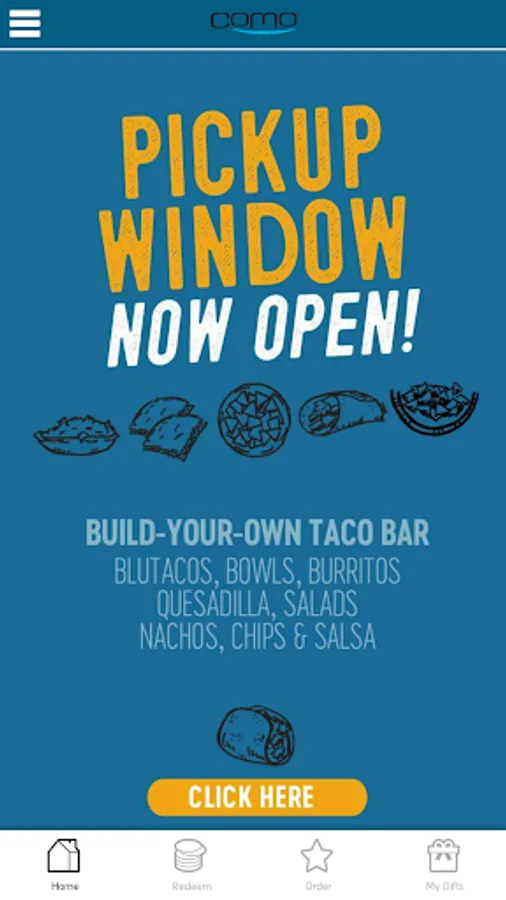 Build your new favorite meal with BluTaco. The BluTaco app allows you to place your order from anywhere! Then visit our convenient pickup window at the Holts Summit, Missouri BluTaco location where your custom order will be waiting for you. Mobile app ordering earns you points. Points = Free Food.