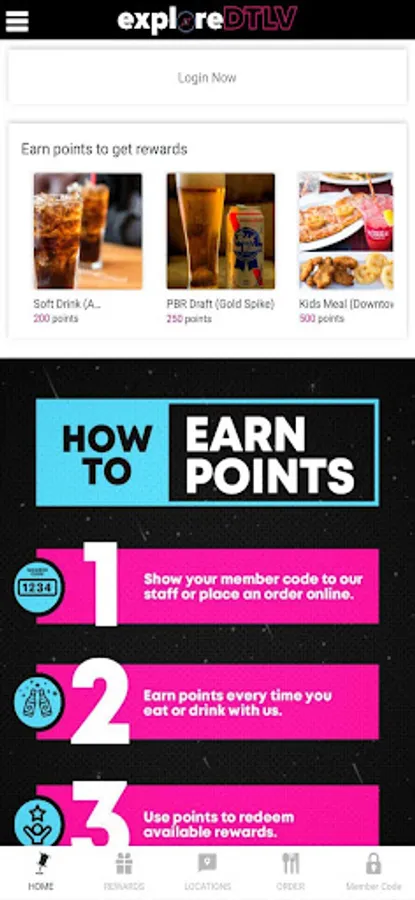 Welcome to the Explore DTLV app. A loyalty program that rewards you for visiting Downtown Las Vegas restaurants and bars. Earn points, choose your rewards and reach new tiers.