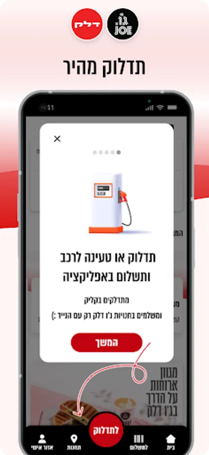 Digital wallet First of all, you can refuel without a wallet! Without re-typing the details and doing it really quickly and for all this goodness you also deserve to get money back. How It Works? For every liter you fill up, you earn 10 cents up to NIS 30! Have you stopped and entered our convenience store? There, too, you deserve 10% of the purchase value. As soon as you reach NIS 50, you can redeem the money you have had fun at Joe Delek stores