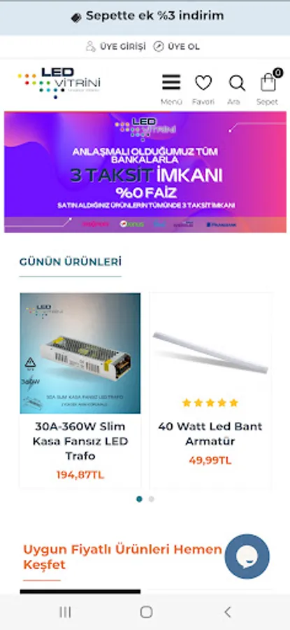 Welcome to Turkey's largest led store. In the application, you can order the led products you want, follow the order, and buy the products instantly with the opportunity of installments to your credit card.