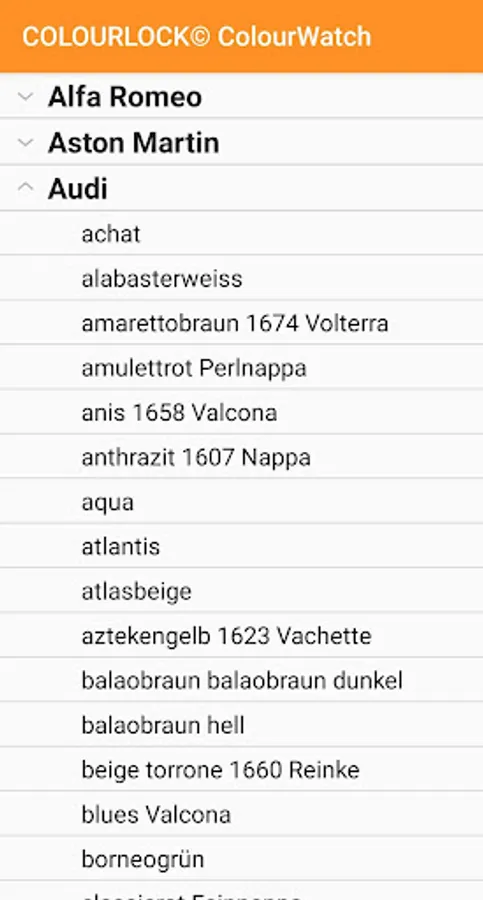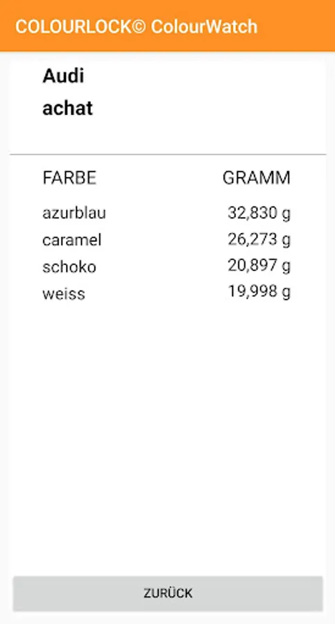 Shows color formulations for car leather and RAL colors with COLOURLOCK® leather colors.