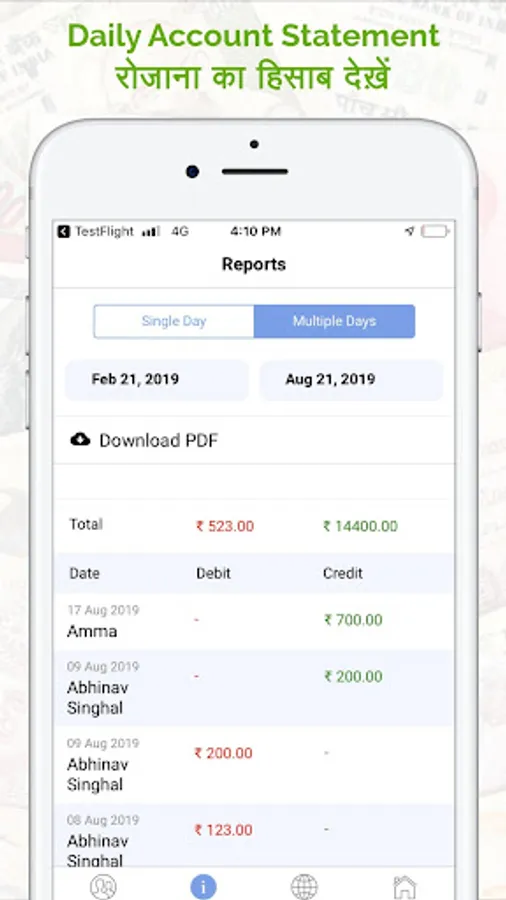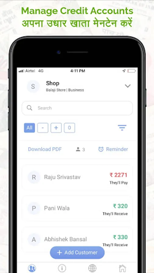 Ok Khata is your digital ledger cash book. It is 100% Free, Safe and Secure and can be used for any type of business to maintain accounts of their customers. Ok Khata works like Tally or Zoho or Busy software for Mobile. Shop owners can best use Ok Khata to record credit and debit transactions of their customers.