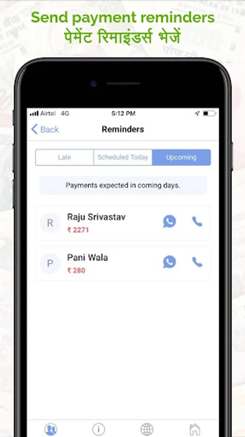 - AUTOMATIC : SMS reminders are sent automatically from udhaar khata book