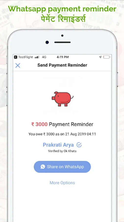 - REMINDER : Send reminders via SMS, WhatsApp, Telegram etc directly from your udhar khaata