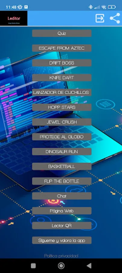 It has 9 fun games, a quiz of general knowledge and sports questions and much more, a QR reader and chat.