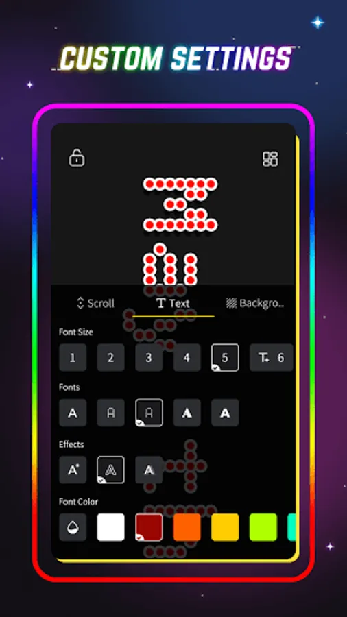 LED Scroller is easy enough to make sure you can use it without obstacles and powerful enough to customize your unique banner and barrage beautifully and amazingly. If you need an atmosphere booster, this LED app will be perfect. LED makes you eye-catching and attractive in the crowd. Come and try this LED scroller and bring more fun to your life.