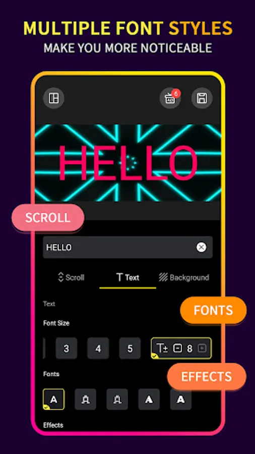 LED scroller & LED banner marquee is a simple, easy-to-use, and completely free LED banner maker app. With lots of free fonts and backgrounds, you can make various styles of LED banner scrolling text.
