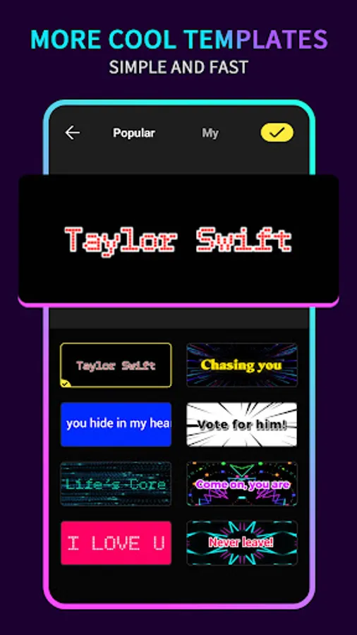 Enter your message, choose a preset template or modify the effect, it will appear auto scrolling on the screen, then you can turn your Android device into a cool LED banner RGB board!✨✨✨