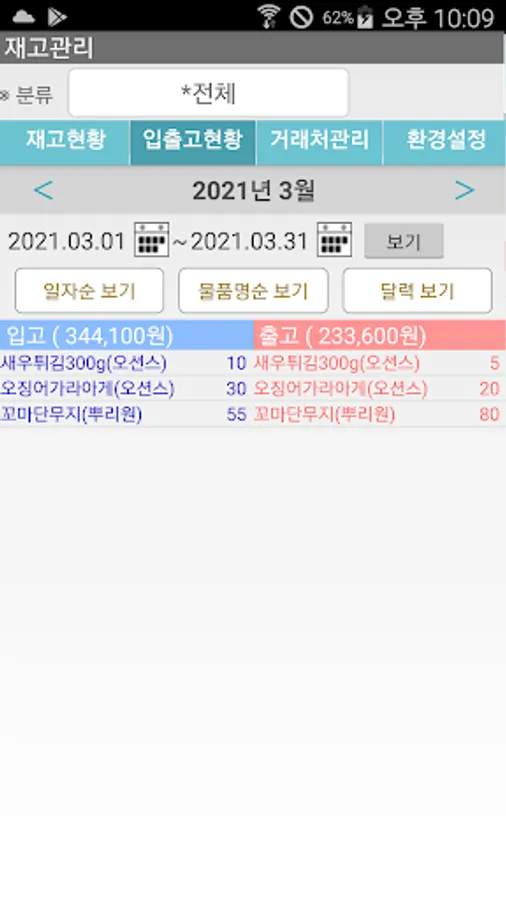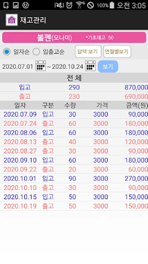 ㅇ View all goods warehousing and shipping history