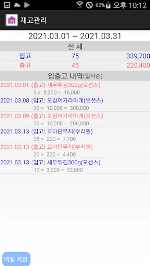 ㅇ Inventory management by item and management of warehousing and shipping details