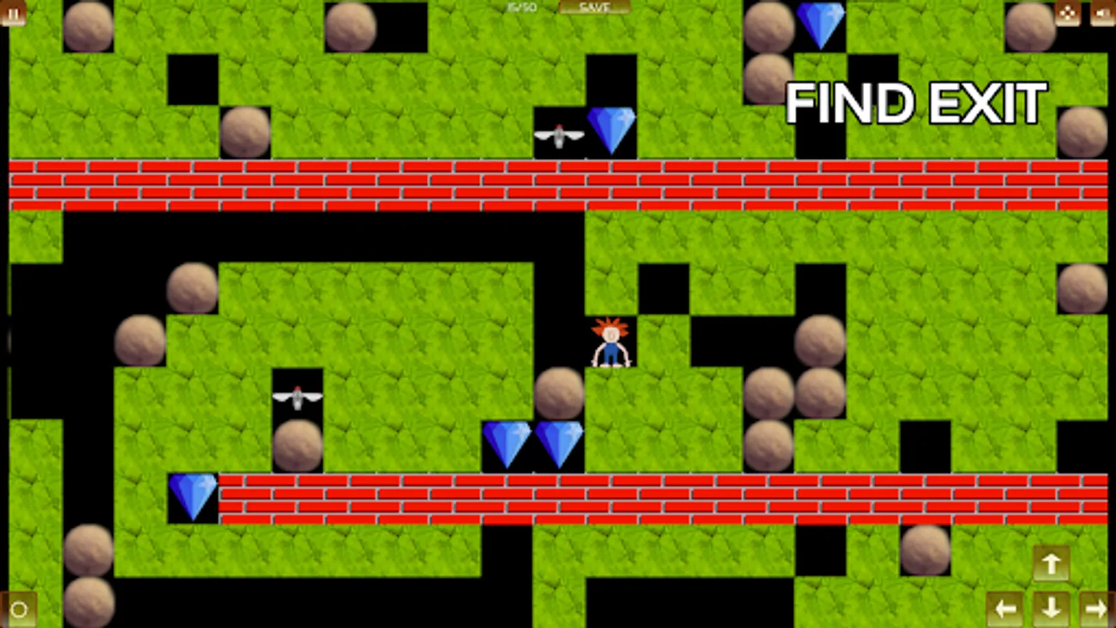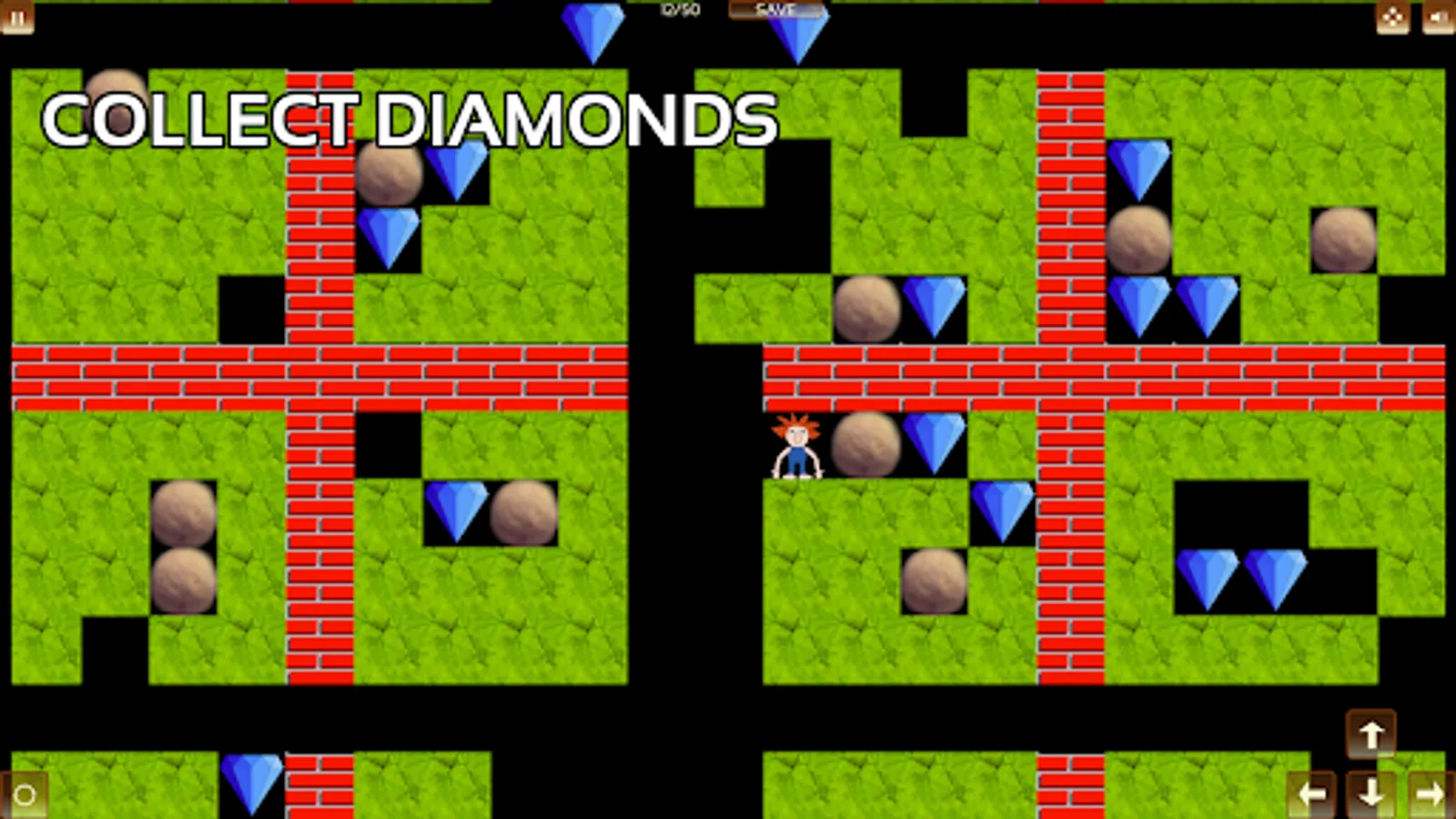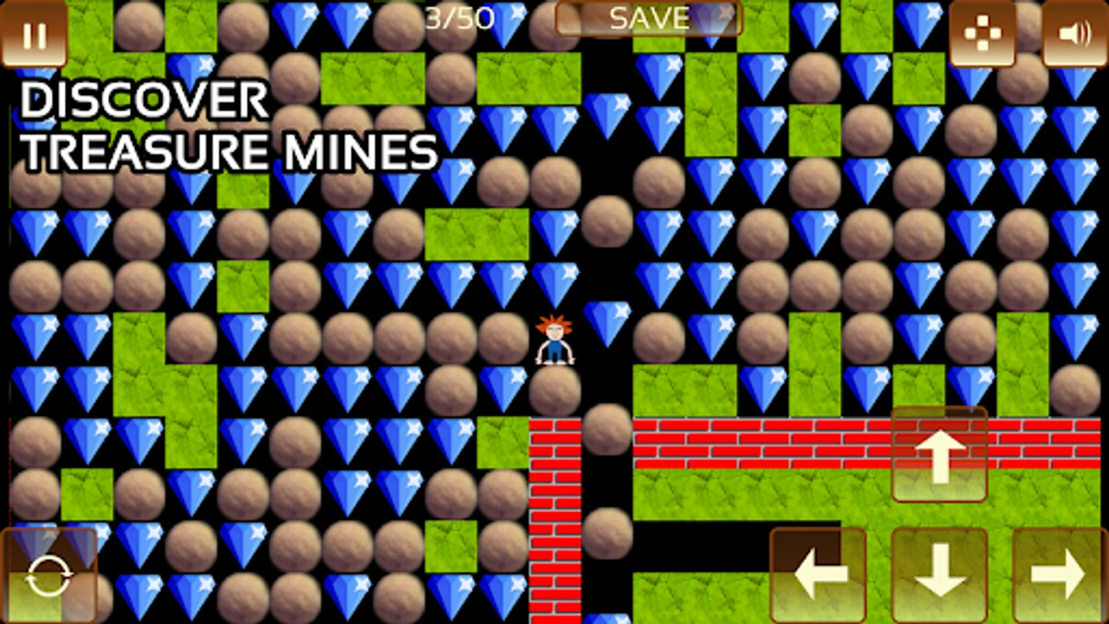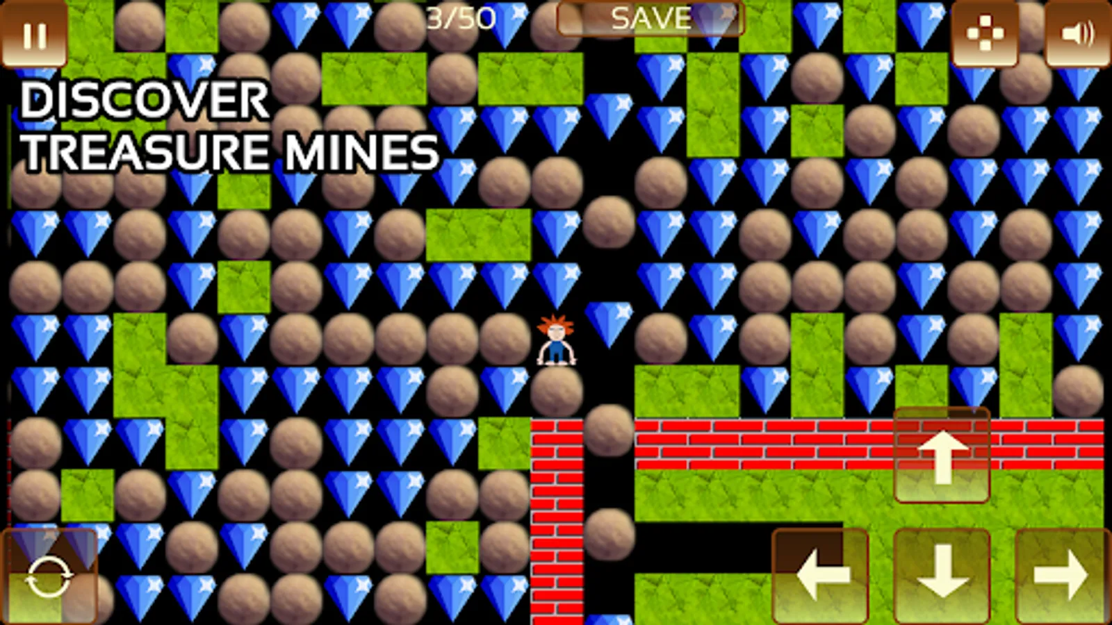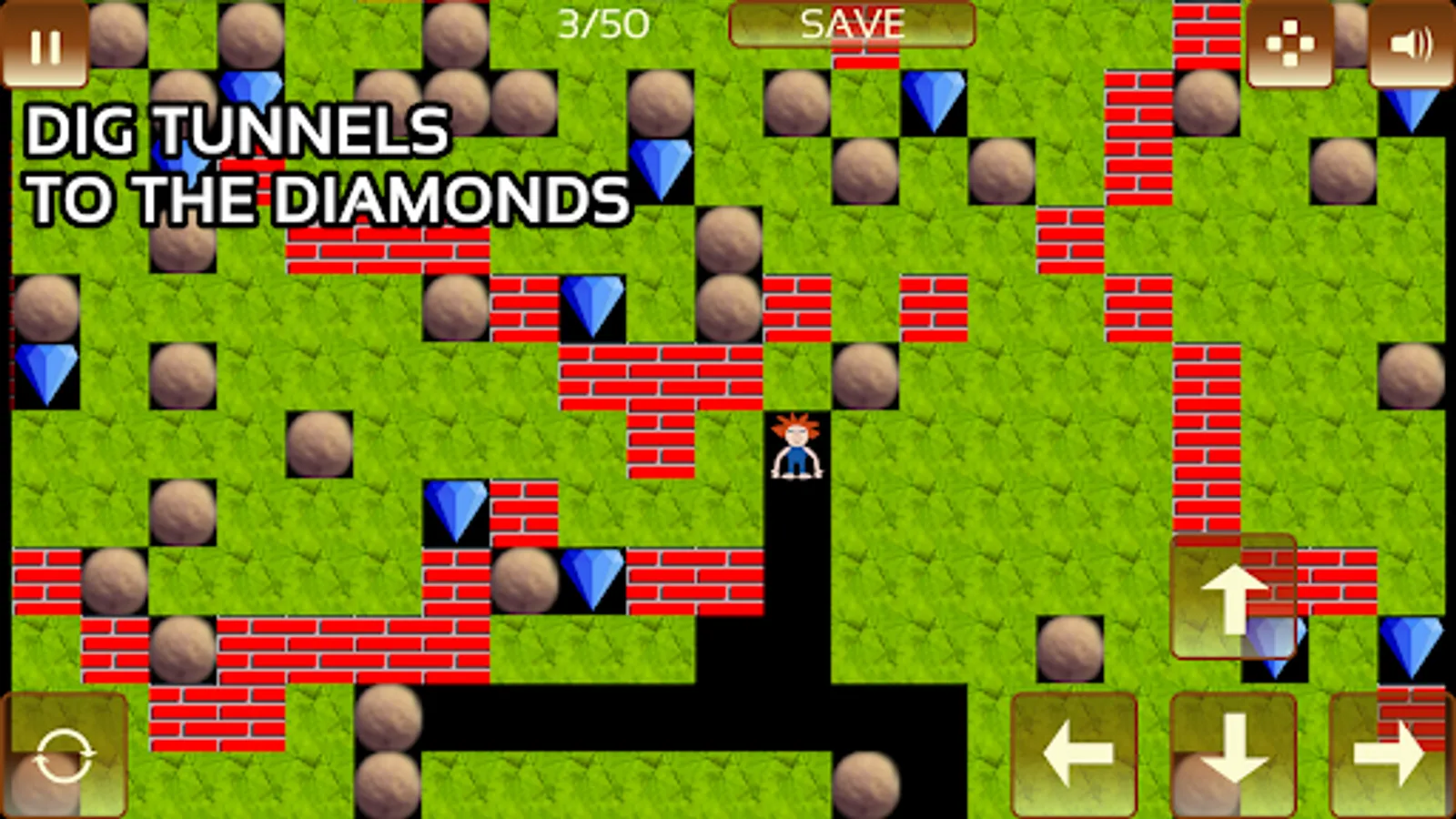 You have to control a cute little miner in the mine. Help him collect all the blue diamonds to escape the mine. Use your logic and strategic thinking to collect as many diamonds as possible in the dangerous depths and find a safe way to the exit. Diamonds are often found in hidden places, you have to figure out how to get to them.