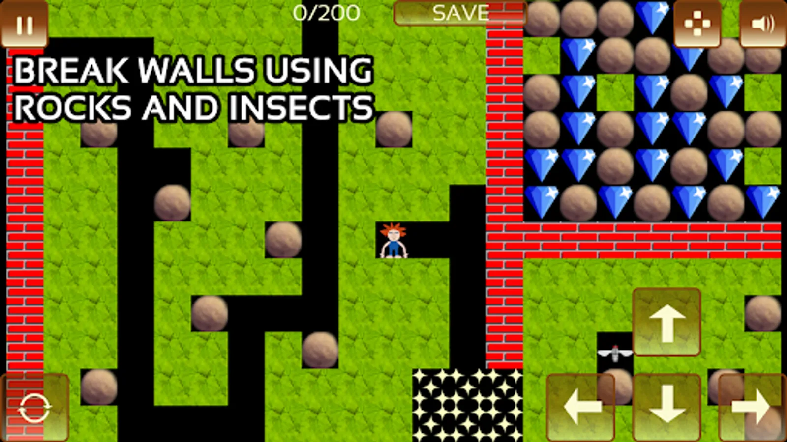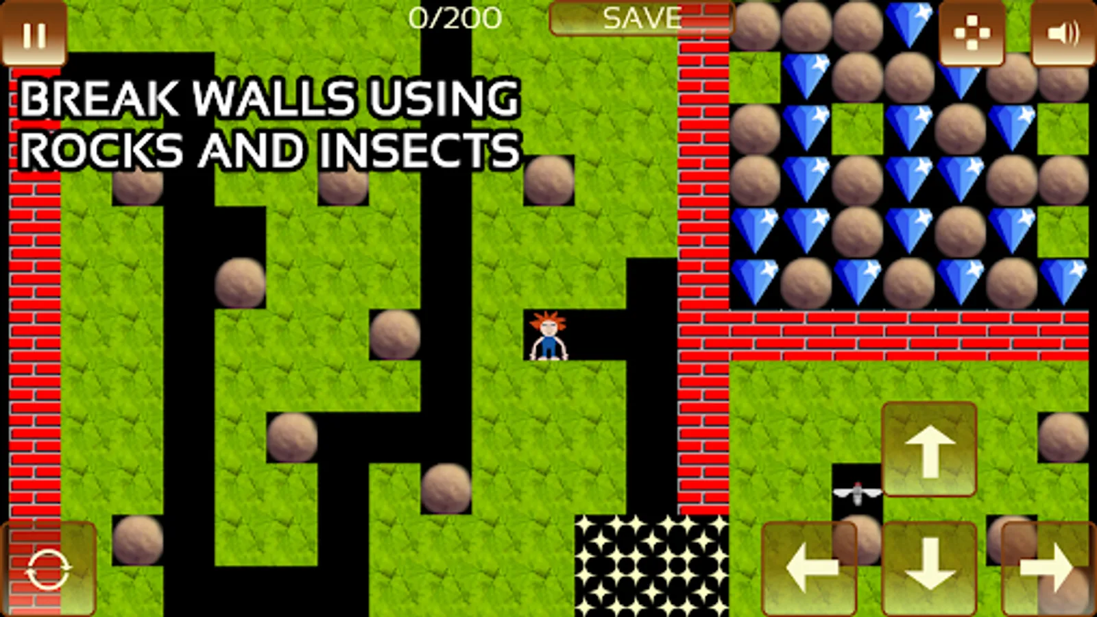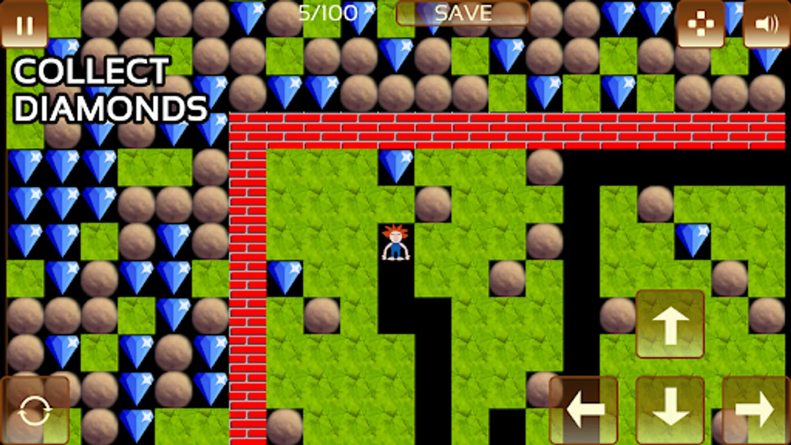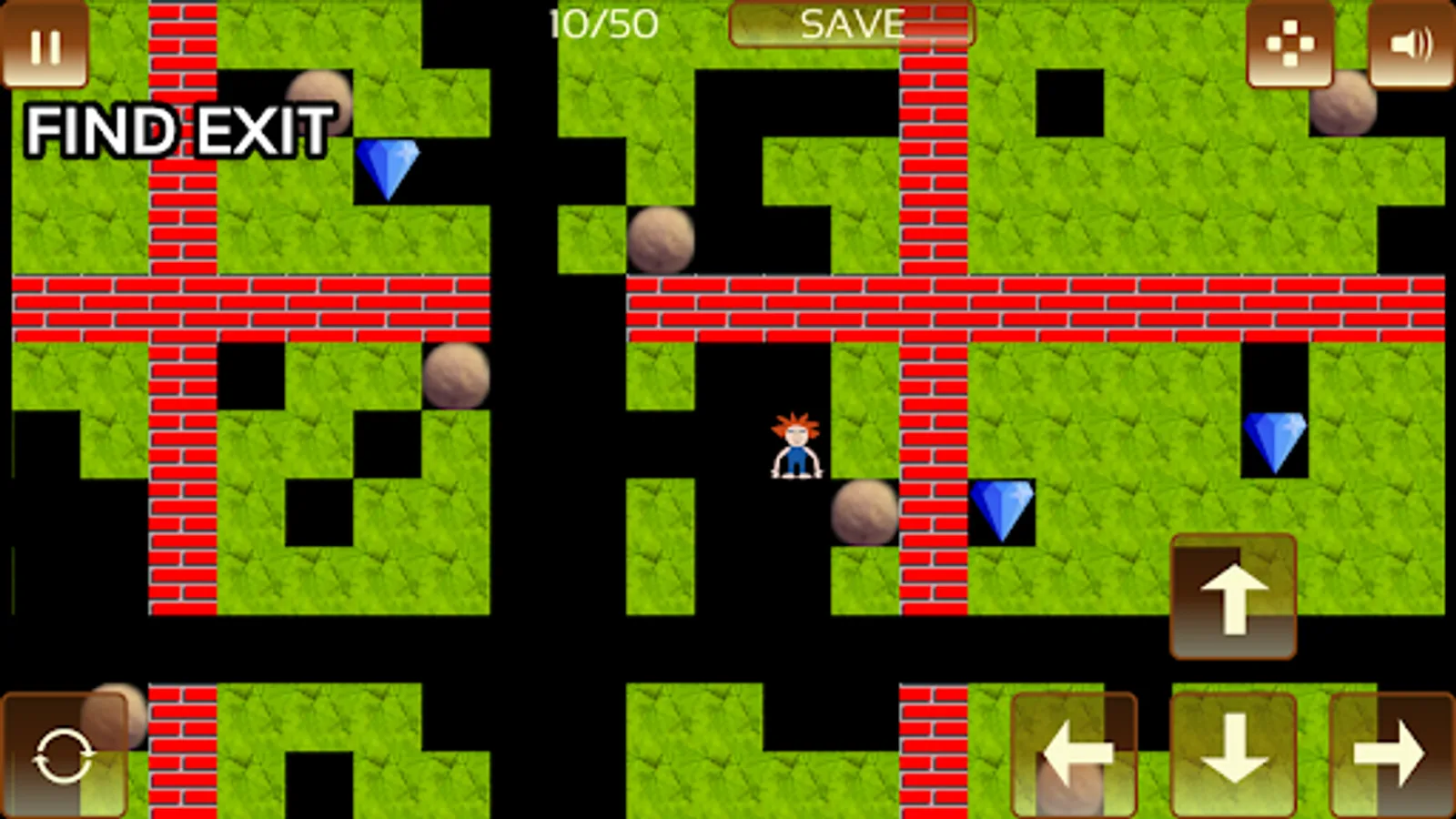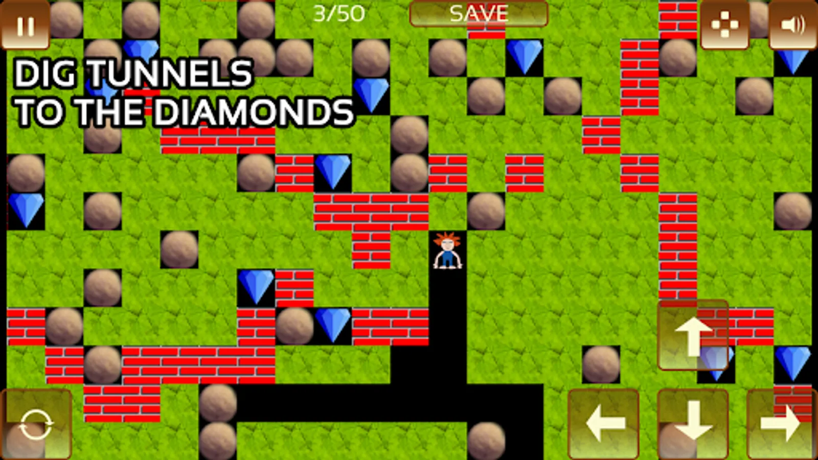 You have to control a cute little miner in the mine. Help him collect all the blue diamonds to escape the mine. Use your logic and strategic thinking to collect as many diamonds as possible in the dangerous depths and find a safe way to the exit. Diamonds are often found in hidden places, you have to figure out how to get to them.
