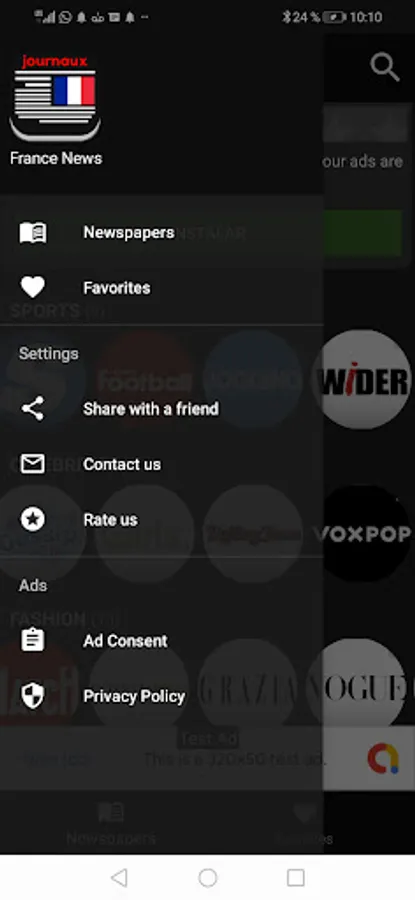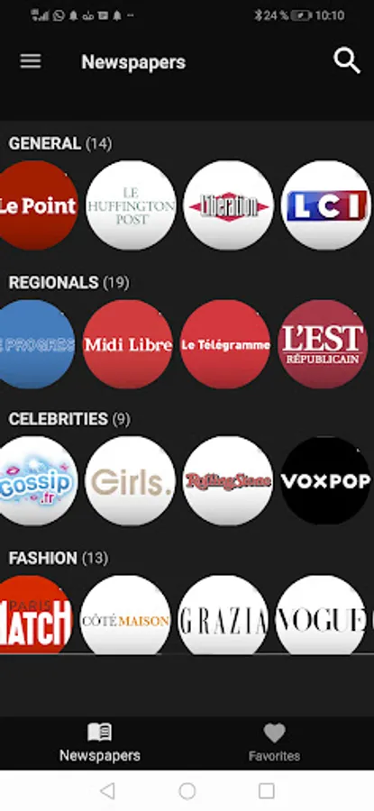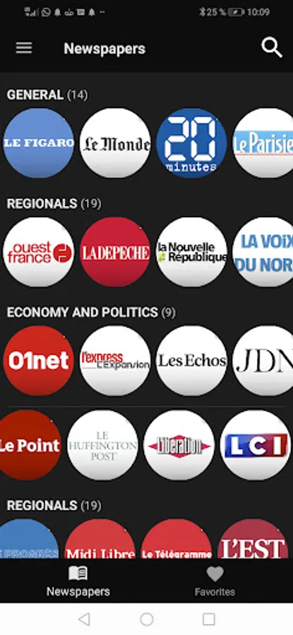 Franceces newspapers are organized by category, so you can easily find the news.