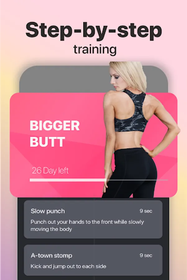 Get bigger buttocks and toned hip in a week. Our weight loss exercises will help you get a model body by toning your butt and thighs. You can choose a personal fitness trainer who can train you to lift booty and build abs. We will help you get big and round buttocks with easy core and gluten exercises. You can stay out of the gym and have no equipment booty workout at home. The buttocks exercise app even has an abdominal exercise program to build abs.